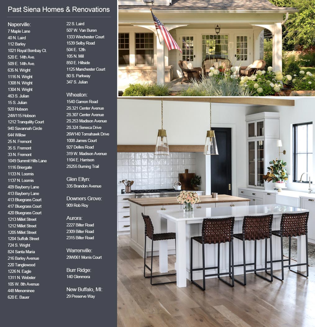 " I selected Siena because of strong reputation in quality craftsmanship, their signature style of casual elegance and competitive pricing, but more importantly, I had felt a strong rapport when talking with Darin and Sherry about my project. Their expertise and knowledge of every aspect in home construction is unquestionable. Communication throughout the entire process was excellent; I always knew what was going on every day or if I had a question, Siena was very quick to respond. They provided thoughtful input on finishes and quickly resolved unexpected issues (what renovation doesn't have them) while completing the project on time-in a short 6 months. Siena’s subs are meticulous and take pride in their work. Siena was very respectful of my wishes and was committed to making sure I had total satisfaction (after installing stonework on the exterior, I expressed to Darin that one side appeared to me to have too many smaller sized stones, but could live with it as is and the next day I was pleasantly surprised it was modified). Each night the broader construction site was always clean. I added a lot of custom trim work throughout the interior of the home and cannot say enough good things about Siena’s trim carpenter and his creativity. Not only was Darin and Sherry available at anytime during the construction phase, they continue to be available long after the project has been completed. As a result, I have a beautiful, high quality home that makes me smile very time I come home."